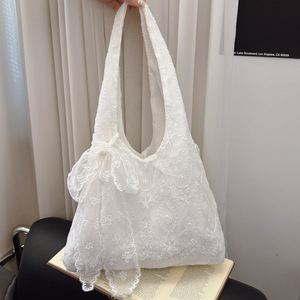 韓国系小清新レース花キャンバスバッグ女性用2025新型大容量通勤バッグ