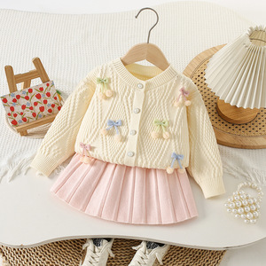 子供のセータースカート大きな多角形キャンディーニットカーディガン秋女の子韓国スタイルベビーガール甘い長袖セータースカート