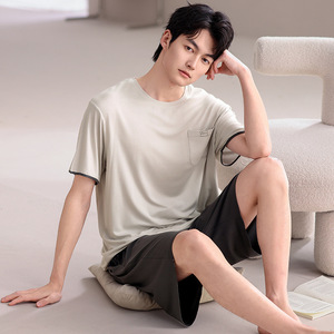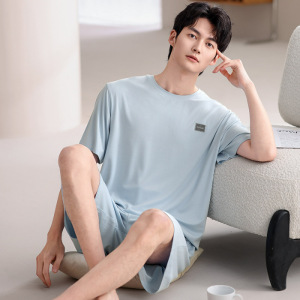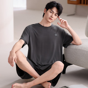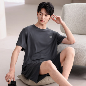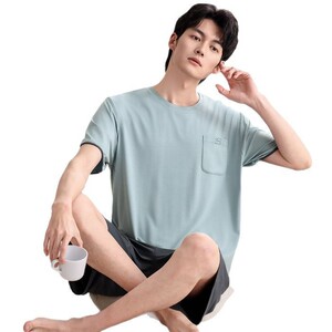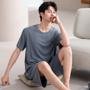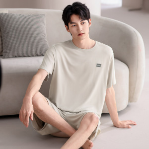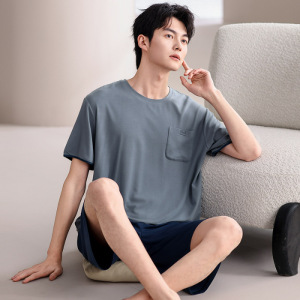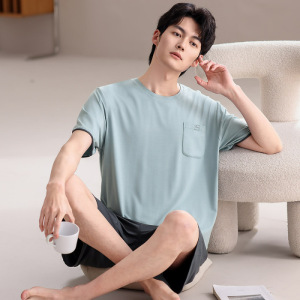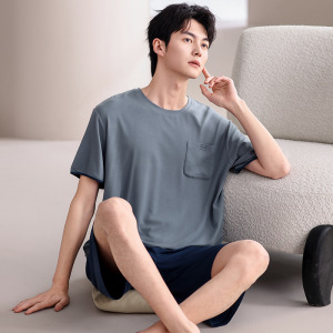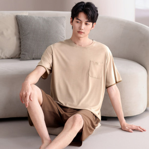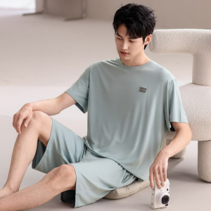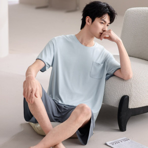 モーダルメンズパジャマ夏薄手半袖ショーツセット屋外で着用可能シンプルカジュアル大きいサイズメンズホーム服