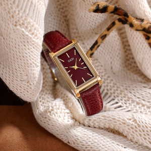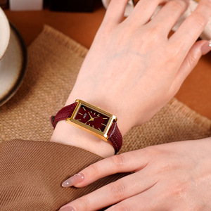 歌迪腕時計の新型の中古風のシンプルな長方形のレトロな金色のアンコラの赤い女性の時計のベルトの石英時計