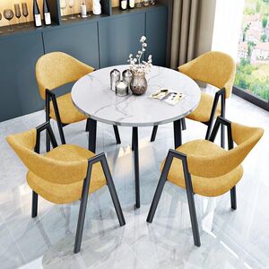 模造白い大理石のテーブルトップ + 黒と黄色の布製の椅子
