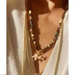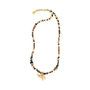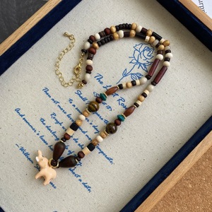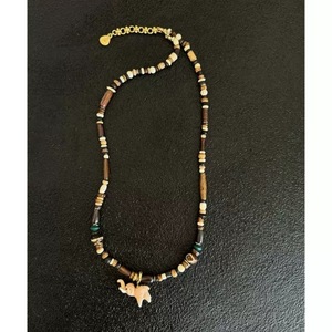 春夏新作茶色ビーズコーデュロイオレンジピンク立体小象ネックレス小众デザイン高级感锁女性