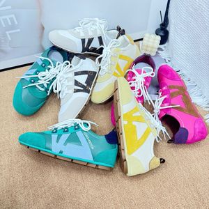 2025 春夏新カラーブロックレースアップフラットヒール薄底道徳トレーニングシューズ女性のバレエスポーツカジュアルフラットシューズトレンディ