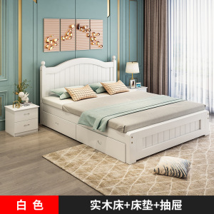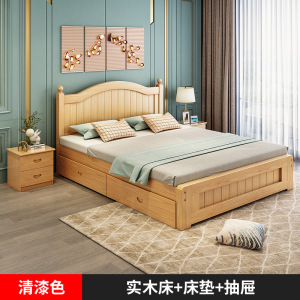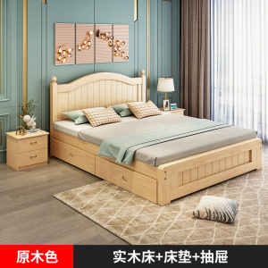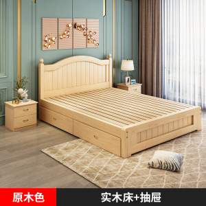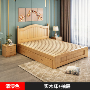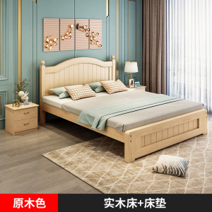 实木床1.5米现代简约欧式双人床主卧1.8家用经济出租房木床单人T&