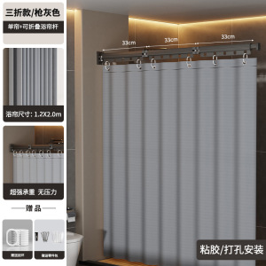 ルームシャワーカーテン吸盤折りたたみ目に見えない浴室乾湿分離バスカーテン防水布シャワーパーティションシャワーカーテンロッド
