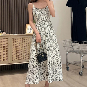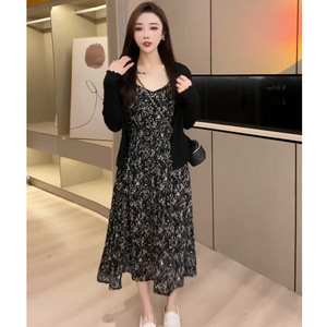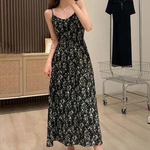フレンチジェントルスタイル花柄サスペンダードレスレディース夏新作薄手カーディガンスカート2点セット