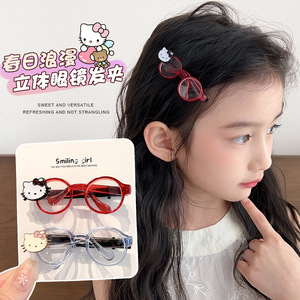 新しいキティメガネヘアピン女の子のヘアピンヘアアクセサリーかわいい漫画女の赤ちゃんの髪前髪クリップ