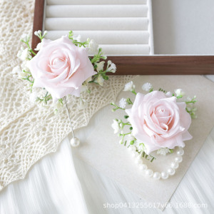 H0014 アマゾンクロスボーダー結婚式のお祝いオープニングゲスト模擬バラの花コサージュ手首の花ウェディング用品