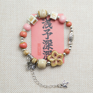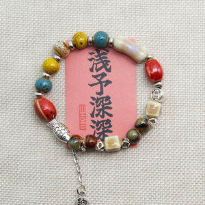 新しい中国風の景徳鎮セラミックブレスレットエスニックスタイル中国風磁器ビーズブレスレット女性のための国民的トレンド文学学生ハンドジュエリー新しいスタイル