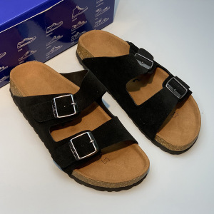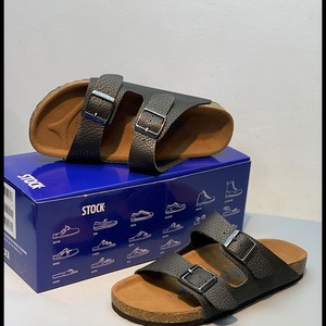 広東省製の高品質!男性と女性のダブルワンライン銅バックルストラップカップルサンダルシンプルで多用途なフラットカジュアルボーケンシューズ