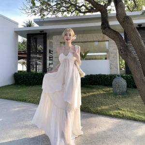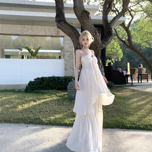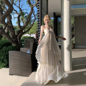 海辺のリゾートスタイルスーツ白いホットガール美しいバックホルターベスト女性の夏服ハイウエストスカートツーピースセット