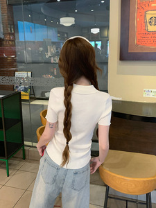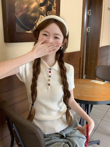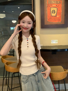 リアルショット特別価格アイスシルク半袖Tシャツセーター2025年夏トレンディボタンショートスリムポロカラートップ婦人服