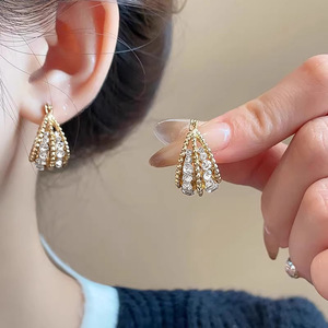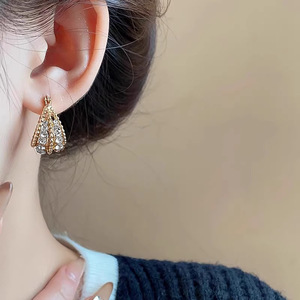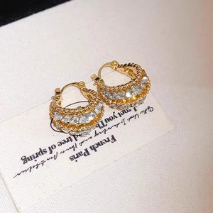 スーパーフラッシュアークフルダイヤモンドバスケットイヤリング、ファッショナブルで軽い高級感、多用途イヤリング、ハイエンド気質、女性用ニッチイヤリング卸売