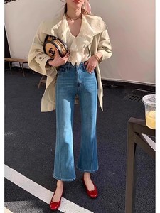 小さい子の小さいラッパのジーパンの女性の夏の新型の大きいサイズの太っているmmのナシ型の体つきの弾力はやせている9分のストレートなズボンを現します。