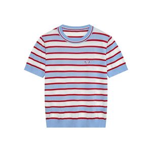 高級婦人服P家ストライプ半袖青と白ストライプが色天糸半袖tシャツフレンチニット夏新作