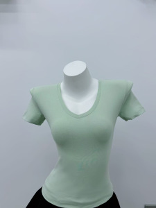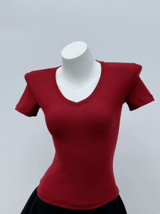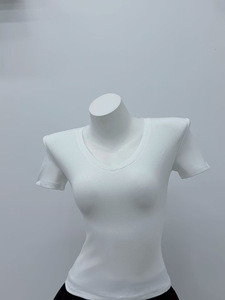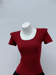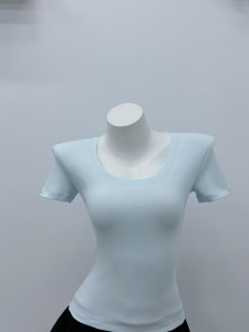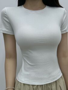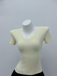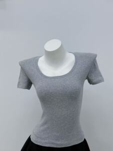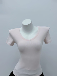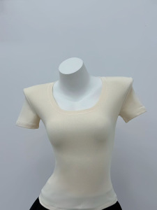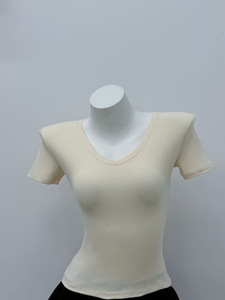 Skim*はXiaoningjiaと同じ生地を使用したフラットショルダーウエストTシャツ、高弾性ヌード半袖レディースウエストボトムストップス