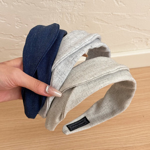 フレンチオフホワイトリネン生地ヘッドバンド女性用プリーツ新しい高頭蓋洗顔ヘッドバンドヘアピン外出用多用途ヘアアクセサリー
