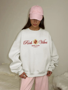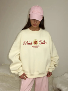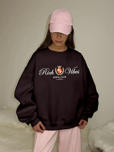 秋冬のヨーロッパとアメリカンスタイルのインターネットセレブ人気トップス、多用途でニッチなプリントラウンドネックプラスベルベットの厚みのある暖かいスウェットシャツ