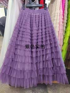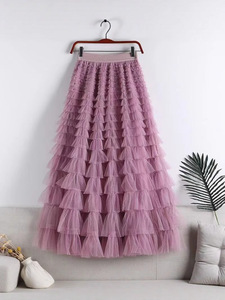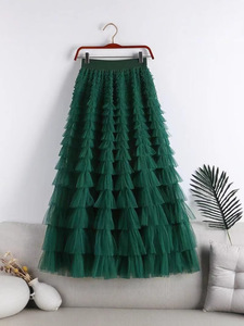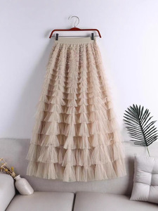 メッシュスプライシングケーキスカート 2025 春夏秋冬新作ミドル丈スカート A ラインロングスカートふわふわガーゼスカート