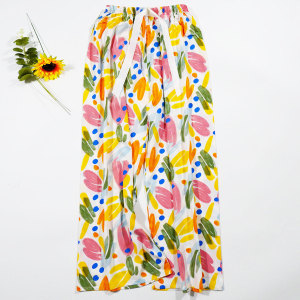 夏用綿シルク素材の9分丈ワイドレッグパンツ、女性用薄手ゆったりサイズ、エアコンパンツ、ビーチパンツ