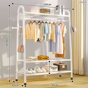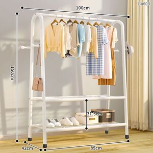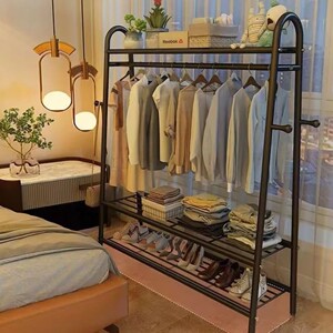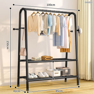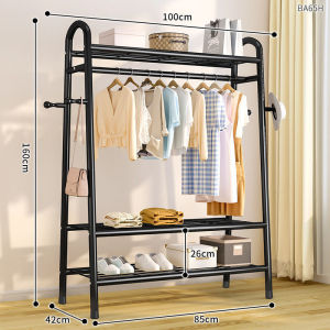 80CM [ボールドブラック] ダブルネット収納+洋服掛け