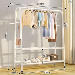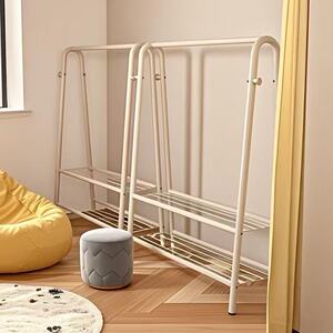 120CM [太字白] ダブルネット収納+洋服掛け