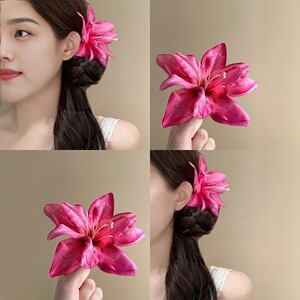 純粋な欲望の雰囲気模擬ユリの花のヘアピン休暇写真チェックイン花チェックイン古代スタイルのサイドヘアピンヘアアクセサリー
