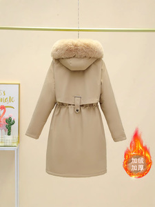 新しいパーカー綿コート女性のミッドレングス 2025 大きいサイズ韓国スタイルプラスベルベット綿コートとジャケット肥厚冬の綿ジャケット