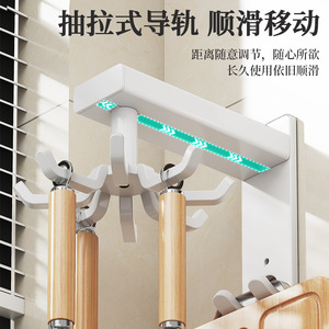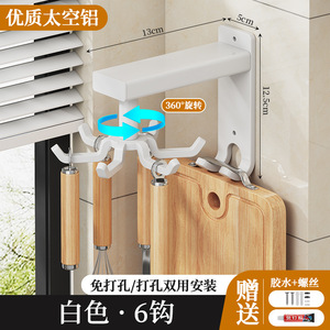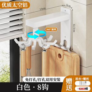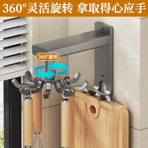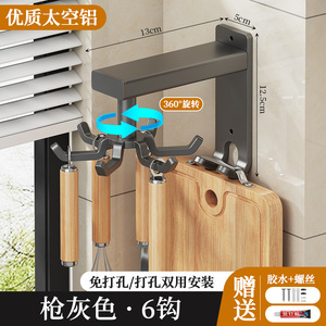 キッチン壁掛けグレー回転スパチュララックスプーン吊りキッチン用品収納ラックパンチフリーフック吊りロッド収納ラック
