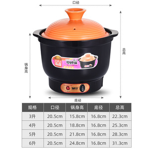 お粥調理用家庭用シチューポット、セラミック電気砂鍋、スープポット、健康維持用紫砂電気シチューポット、大容量スープポット