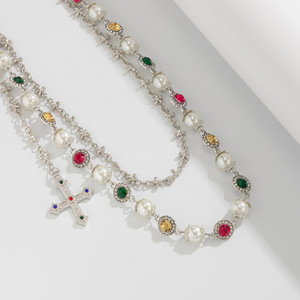 欧米の国境を越えた装飾品パンクヒップホップ風にクロスのズボンのチェーンを入れたアイデアカラーは真珠の腰飾りに似せています。