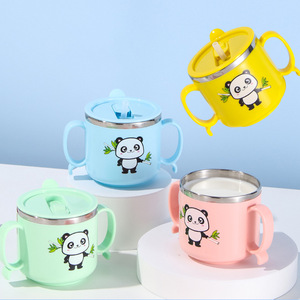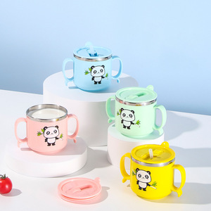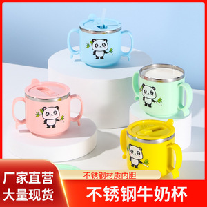 新款不锈钢儿童卡通牛奶杯幼儿园小学生防烫水杯带盖圆形牛奶杯