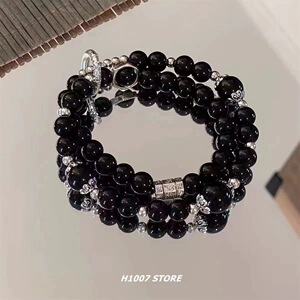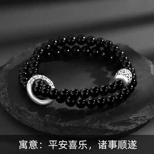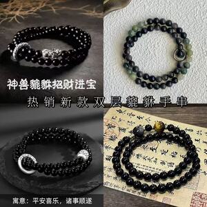 人気のブレスレット「売れ筋二層貔貅」新しい中国風ビーズ三日月幸運と宝物ブレスレットブラックビーズギフト