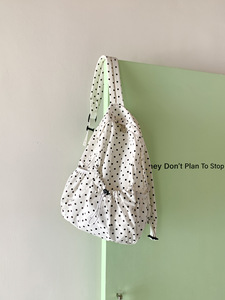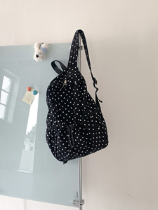 新型リュックサックins軽やかな文芸波点リュックサック女子学生のキャンパス風のひものしわのカジュアルな日本のかばん