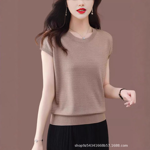 ママの夏のニットウェアレディースTシャツ半袖夏薄手のニットウェア高級アイスシルクトップ