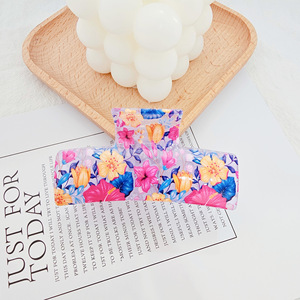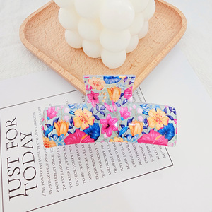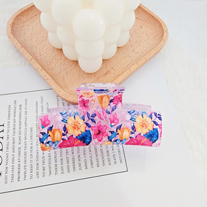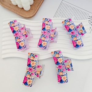 甘い花柄のサメクリップ、エレガントでエレガントなスタイルの大きな正方形のクリップ、新しい後頭部のヘアピンとヘッドバンド