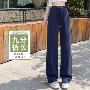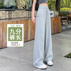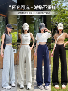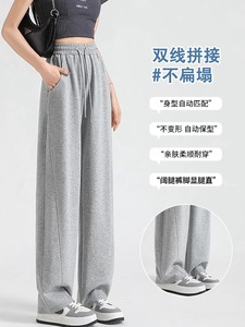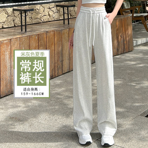 バナナワイドレッグパンツ女性の夏薄い 2025 新しいアイスシルクハイウエストグレーホワイトカジュアルストレートスポーツパンツ