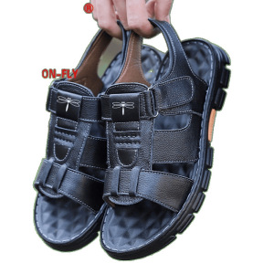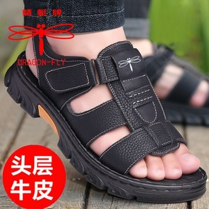 トンボブランド本物の夏本革第一層牛革カジュアルビーチシューズ厚底滑り止め中年男性の新しいサンダル