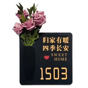 家に帰ったら暖かい花瓶 + 部屋番号 (ピンクのバラ 5 本無料) - 25cm*25cm