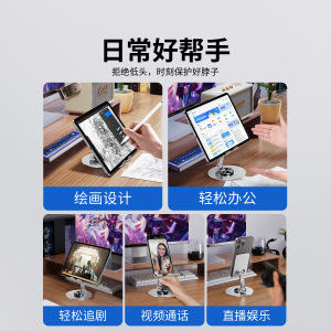オールメタルデスクトップ携帯電話ホルダー、折りたたみ式360度回転金属タブレットホルダー、ドラマ視聴用レイジーホルダー