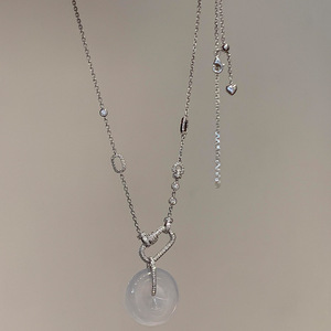 18K ホワイトゴールドメッキユニバーサルチェーンペーパークリップペンダントバックルヘッド高品質翡翠ビーズネックレスジュエリーペンダント DIY 装飾