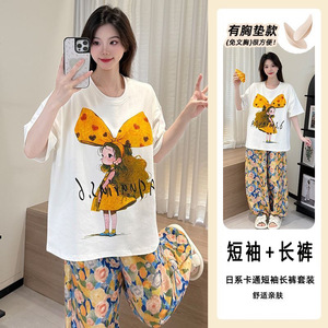 女性用パジャマ、胸パッド付き夏用半袖ズボンセット、2025年新作ネットセレブスタイル、屋外で着用可能、大きいサイズのホーム服