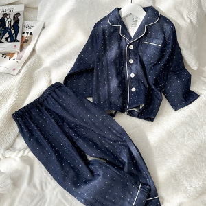 日本製無印綿二重糸サイドシームなし長袖スーツ男の子女の子パジャマ親子子供ホーム服