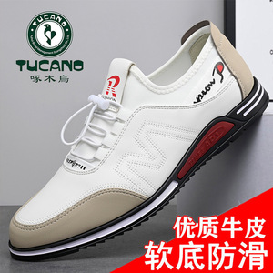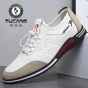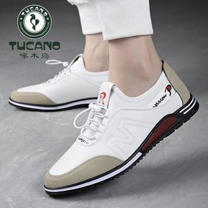 ウッドペッカー紳士靴 2025 秋の新作メンズカジュアルホワイトトレンディシューズ多用途本革通気性のある男性用革靴