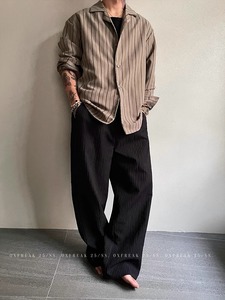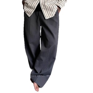 テクスチャードアイスシルクプリーツオールドマネーストライプカジュアルパンツメンズ2025夏新スタイルドレープルーズ万能ロングパンツ