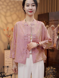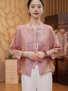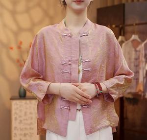 [チャーミング] フローティングライトブロケード新中国風ファッションジャケット女性用 2025 春夏新スタイル中国風ボタンカーディガン
