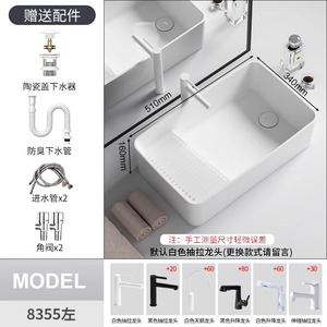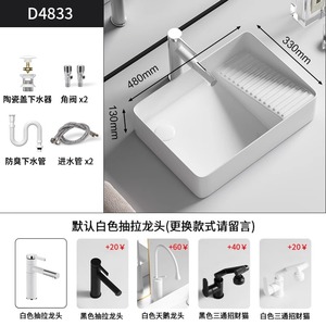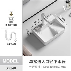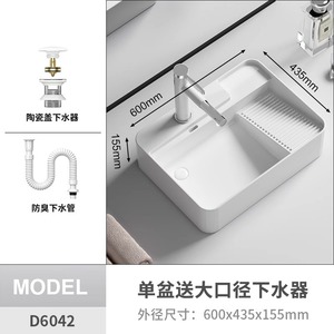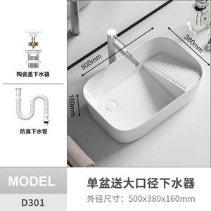 洗濯板付きシンプルセラミックカウンタートップ洗面器、バルコニー洗濯洗面器、家庭用カウンタートップ洗面器、左右側排水洗面器、シングル洗面器