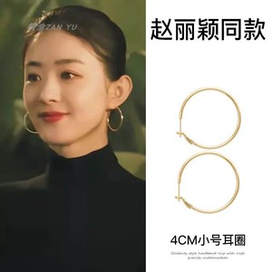 S925シルバーメッキニードルラージフープイヤリング、女性用ライトラグジュアリー高級プレーンフープイヤリング、2025年新作人気スタイル、誇張イヤリング