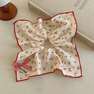 オフホワイト&バタフライチェリー花柄スクエアスカーフ