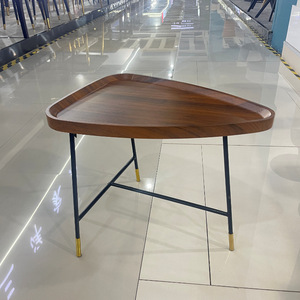 北欧デザイナー三角サイドテーブル組み合わせウォールナットカラーライト高級シンプルアイアンコーナーテーブル無垢材小さなコーヒーテーブル